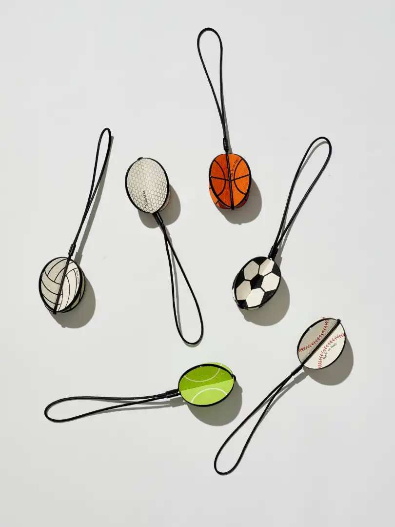 To toast the Paris Olympic Games, Italian leather-goods specialist Valextra has created a capsule collection of limited-edition bag charms, inspired by the sports that will compete this summer. Think tennis balls, basketballs, golf balls and volleyballs transformed into 3D charms with long leather straps that can be added to keyrings or the handles of your favourite day bag. They look particularly good hanging from Valextra’s denim and raffia striped totes – a chic, playful way to channel your love of sport.