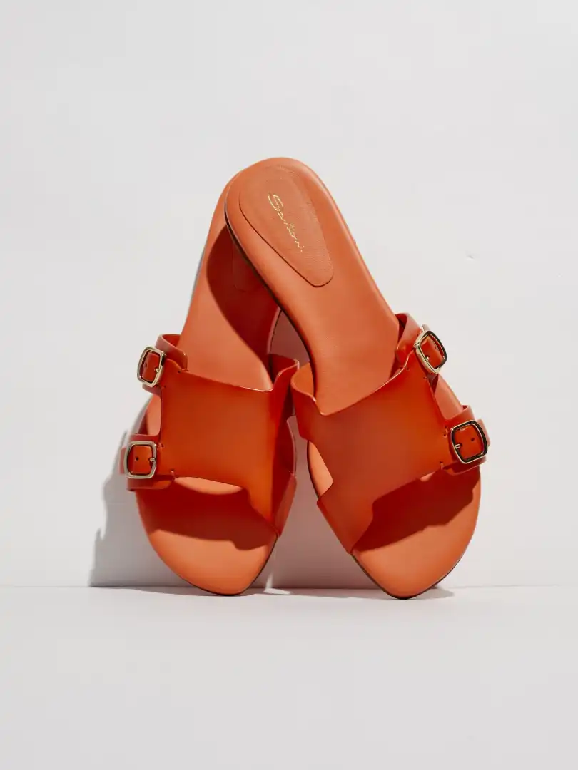 Santoni has also been working on expanding its men’s offering, as well as bolstering its women’s and leather-goods ranges. These unisex leather slides, featuring double-buckle straps, make for an elegant off-duty staple.