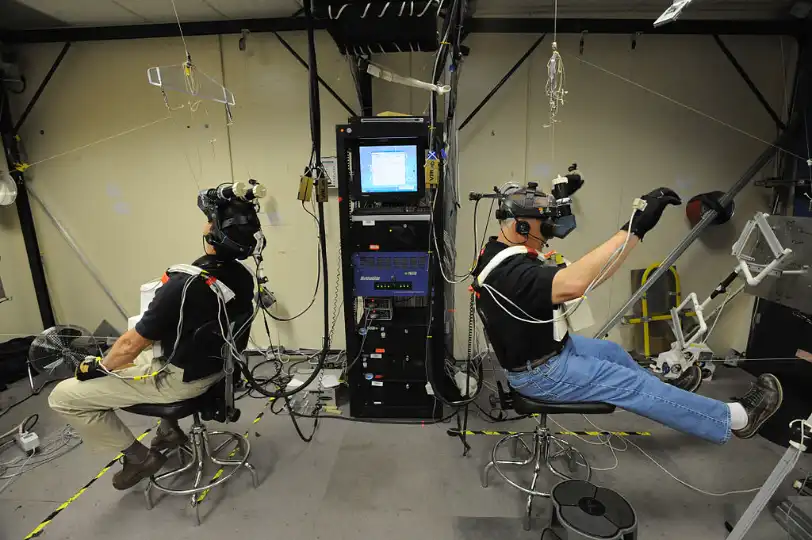 The people who are chosen will also need to have near-perfect eyesight and be in good shape. They must be good at working with other people. Above, astronauts practice docking with the International Space Station in a simulator.