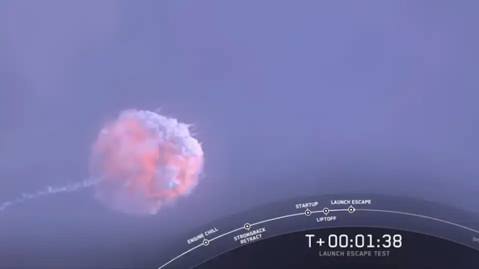 SpaceX, a company working to supply NASA with spacecraft, has successfully tested its emergency escape system. During the test, the capsule was safely carried away, while the main rocket exploded. This picture shows what the escape might look like from space.