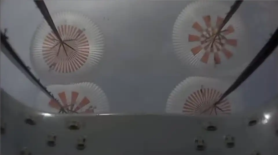 The Dragon capsule used small thrusters so that it was positioned correctly. Then two sets of parachutes opened up, slowing down the capsule as it returned to Earth. About nine minutes after takeoff, the capsule had splashed down safely in the Atlantic Ocean.