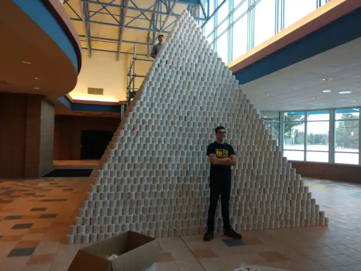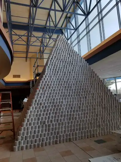 BlitzCreek has been planning the pyramid since last May. One challenge was calculating how many rolls of paper were needed. The answer turned out to be 27,434.*