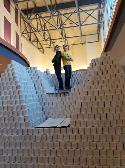 Maxton Herst, 18, first had the idea of building a toilet paper pyramid to raise money in ninth grade, when he joined the robotics team. By accident, he came across a video about a toilet paper pyramid. Maxton realized that it was possible to build a record-setting pyramid, and then sell the toilet paper to raise money.