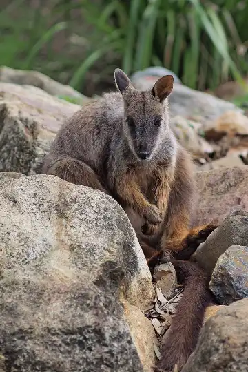 Workers for Australia’s National Park are using helicopters to drop sweet potatoes and carrots onto 12 different areas where rock-wallabies live. Rock-wallabies like the one above often survive bushfires, but can have difficulty finding enough to eat once the fires have passed.