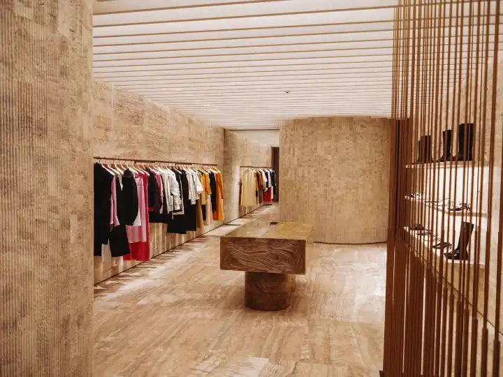 That was also the thinking behind Jil Sander’s new retail concept, formally introduced on London’s Bond Street this year. The aim was to surprise customers by marrying the purist design that the brand is known for with something warmer. “It’s easy to make something simple,” says Luke. “But to do something that’s simple but also has personality, soul and a warm energy is actually very difficult.” “It comes down to considering everything from colour to materials, and the small details such as the curves on the shelving. It all comes together to create this intimacy.”