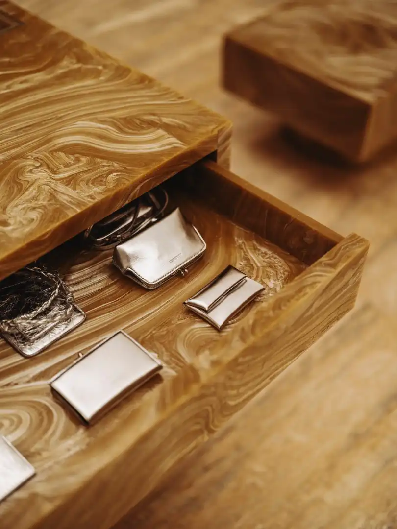 Indeed, the new space feels like a breath of fresh air on Bond Street, where new openings have become less frequent of late. At the door, smiling staff in crisp white shirts set the tone, while inside, the sense of warmth that the Meiers were aiming for is immediately felt through the use of raw travertine, brass poles that create more private, intimate sections and subtle touches of colour, like the pair of silver-blue benches, created using recycled CDs. There’s enough product on display to encourage browsing – a refreshing change from current design trends where shop floors are sparse and boutiques resemble museums. “The idea of slick, quite intimidating spaces is in the past,” says Luke. “There needs to be an element of discovery and you should feel like you’re having a unique experience. The sounds, the interaction with people, need to be at a very high level. This isn’t just a place where you come and pick something up; it’s a place to experience.”