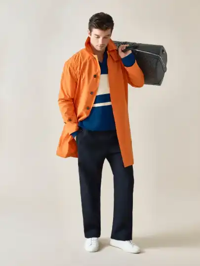 coat byMackintosh, jumper, trousers and bag byGucci, trainers byCQP